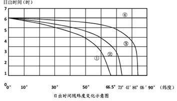 31、若图示为北半球日出时间纬度分布,则与4月8日最接近的曲线是: