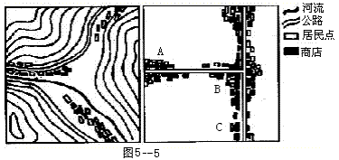(5)A、B、C三处聚落中,最容易发展成城市的是 处,因为该处 。