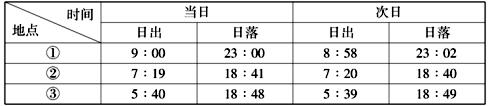下表为某三地连续两日日出与日落时刻(北京时间)。据此回答25-26题。![]()