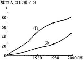 读下图“世界发达国家与发展中国家城市人口占总人口比重变化曲线图”,然后分析回答: