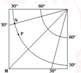 下图是经纬网图,已知M地位于赤道,N地比P地先见到日落;此刻,图中70度纬线以内为极昼,再过8小时,N地太阳高度达当日最大。此刻,太阳直射( )