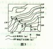 读图3“我国华北某地局部地图”,图中有四口潜水井;完成13 -15题。