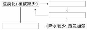(1)请根据地理环境整体性原理,将图乙中山脉以西荒漠化自然因素(大气、水、岩石、土壤、生物等)之间的关系选择填入下图中。