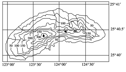2012年8月以来,中日钓鱼岛之争愈演愈烈。下图为我国钓鱼岛等高线分布图(单位:米)。读图回答3~4题。