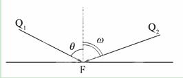 读下图,某经线上点F,虚线为过该点的地面垂直线,Q1、Q2是F点两个不同时刻的太阳光线,且经线、虚线和太阳光线位于同一平面上。完成15~16题。