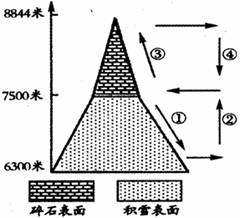 10.与图中海拔7500米以下相比,海拔7500米以上几乎没有积雪的主要原因是
