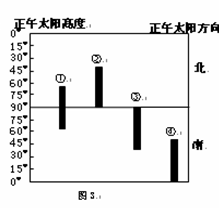 我国某校地理兴趣小组的同学,把世界上四地年内正午太阳高度变化及方向绘成简图(图3)。请据图回答6—7题。