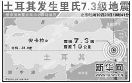 据国家地震台网测定,北京时间2011年10月23日18时41分,在土耳其(北纬38.8度,东经43.5度)(东3区)发生7.3级地震,震源深度约10公里(如图1)。此次地震发生时,当地的区时是