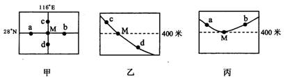 下面三幅图中,甲图为M地附近地区的平面图,乙图和丙图分别为过甲图相应的点作的地形剖面图。读图回答3--4题。