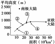 下图是为了了解地壳的平均厚度而绘出的各大陆面积和平均高度的关系图,读下图完成31~32题。