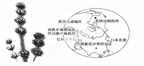 材料1:下图是薰衣草北半球主要产区分布示意图。