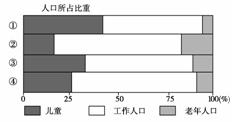 下图是某四国的人口构成示意图。读图回答9~10题。