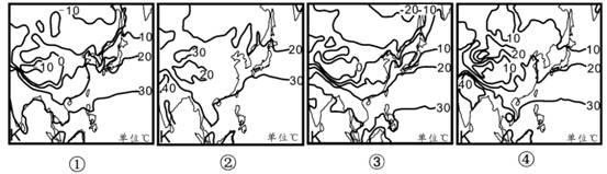 15. 据图气温分布状况判断,四幅图由第一季度到第四季度的正确排序是