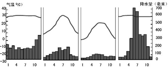 读亚洲部分地区四个季度平均气温分布图。