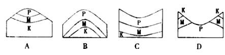 21. 下图中能反映左上图沿EF线所作地层剖面示意图的是