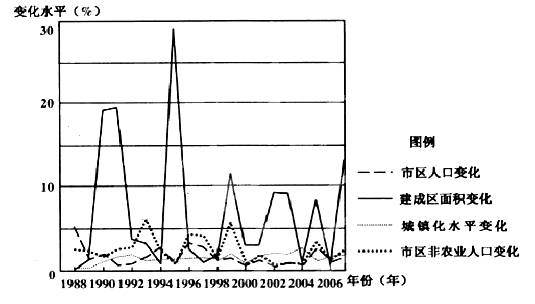 A.城镇化水平增速最慢 B.城市总面积逐年增长