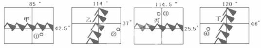 下图为我国四座重要山脉,甲、乙、丙、丁依次是天山、太行山、南岭、大兴安岭,据此回答下题: