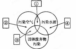 从工业废弃物对环境影响的角度考虑,图中数码表示的工业部门排序正确的是( )