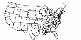 下图是美国本土某种工业生产厂的分布图,读图并结合所学地理原理回答31~32题。