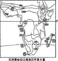 读非洲部分地区年降水量分布图,回答下列问题。(12分)