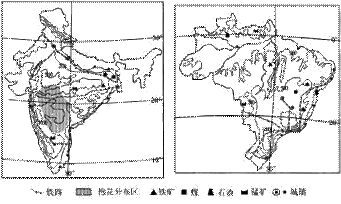 (3)印度、巴西钢铁工业较为发达。简要叙述其发展的共同有利条件。(4分)