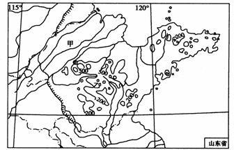 读山东省地形简图,回答下列问题。(10分)