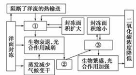洋面封冻产生的效应叫做洋面封冻效应,下图是“洋面封冻效应与水、气候、生物相互作用关系示意图”。据此完成4~6题。