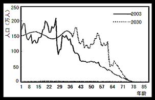 读我国某省2003年与2030年人口年龄结构比较图,完成9—10题。