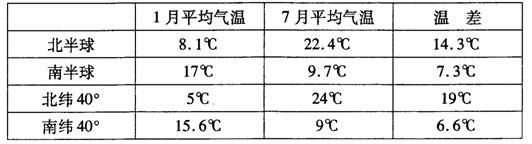 A.夏半年时间长 B.冬半年时间长 C.陆地面积大 D.海洋面积大