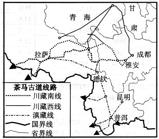 材料二: “茶马古道”线路图。