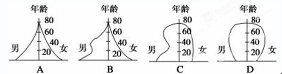 20.根据所学知识判断,我国第六次人口普查人口年龄结构金字塔最接近下图中的( )