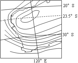 图7为澳大利亚某月等温线分布局部图,回答第10题。