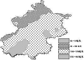 材料二 北京市降水量分布图(2012年07月21日10时至22日06时)