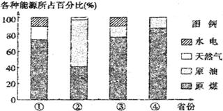 下图是2004年河北、甘肃、四川、黑龙江四省能源生产结构图。读图回答16~17题。