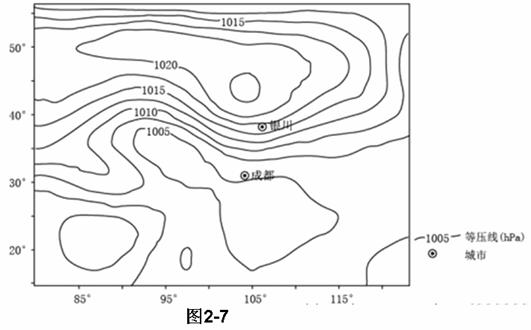 材料二:图2-7表示2006年9月3日20时地面气压场。