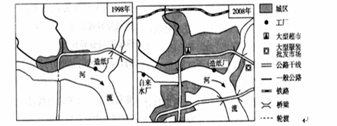 下图是某城市空间形态变化示意图,读图完成31~32题.