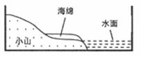 在两个相同的长方形塑料盒子的一端用潮湿的土壤分别搭起一座相同坡度的“小山”,从盒子的另一端倒入等量的水,形成“湖泊”;不同的是在其中一个盆子内,将一块微湿的海绵压入“小山”底端的土壤里(见图)。分别用两个喷水壶,往“小山”上洒等量的水,模拟降水。观察、比较两个盒子内水面发生的变化。