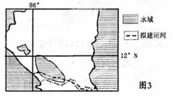 图3为世界某国拟建运河位置示意图。读图完成5 ~6题。