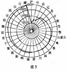 图5为我国各省级行政区进入人口零增长年份预测图(港澳台地区资料暂缺)。读图完 成9 ~ 10题。