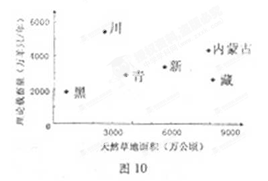 图10 为我国六省区天然草地面积与理论载畜量散点图。,读图完成19-20题
