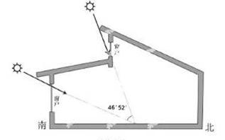①利于夏季遮阳,冬季采光 ②冬至到春分,正午室内的日照面积逐渐增大