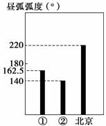 某校地理兴趣小组的同学,将某一天三地的昼弧长短状况绘成示意图。读图完成20~21题。