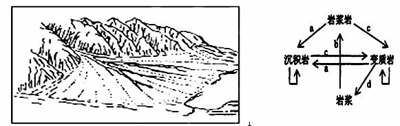 读“岩石圈的物质循环示意图”,回答16-17题。