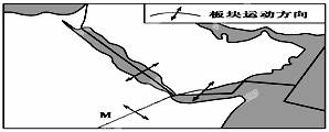 下图为某地海陆轮廓和板块运动示意图。读图完成第18题。