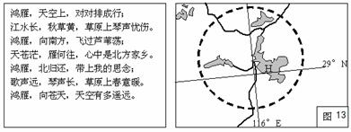 35.若游人在图13中H湖观赏到大量的鸿雁群,则最可能是在