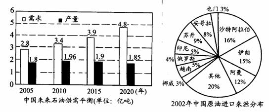 (1)从图看出,巨大的供需缺口将使中国石油对外依赖程度不断扩大,对外依赖程度将于 年之前超过50%;我国的石油主要来源于 地区。(4分)