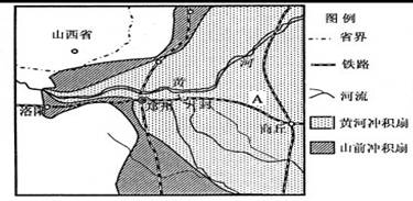 图3为黄河冲积扇分布图(局部),回答8~9题。