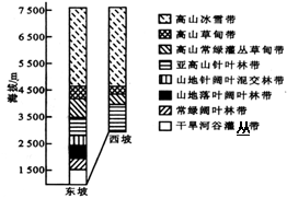 下图示意我国某山的东坡和西坡的垂直带谱,完成3—4题。