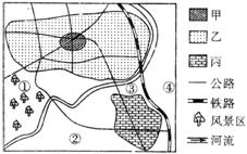 7.与图例中甲、乙、丙功能区对应正确的是