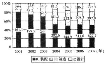 材料三 下图为苏州工业园区IC产业产值结构变化图。